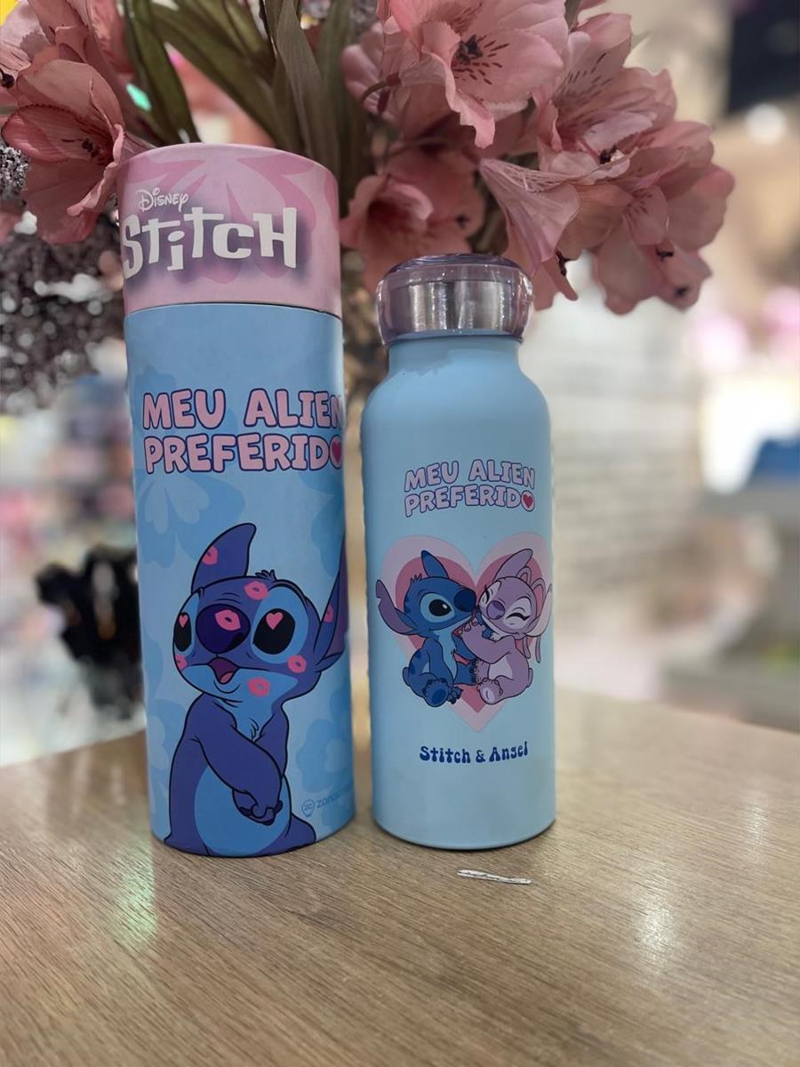 Garrafa Térmica Bubble Stitch da coleção Namorados da Disney. Possui capacidade de 500ml e é feita em aço inoxidável com parede dupla que mantem a temperatura da bebida, sendo 12h gerada ou quentes por até 6h.