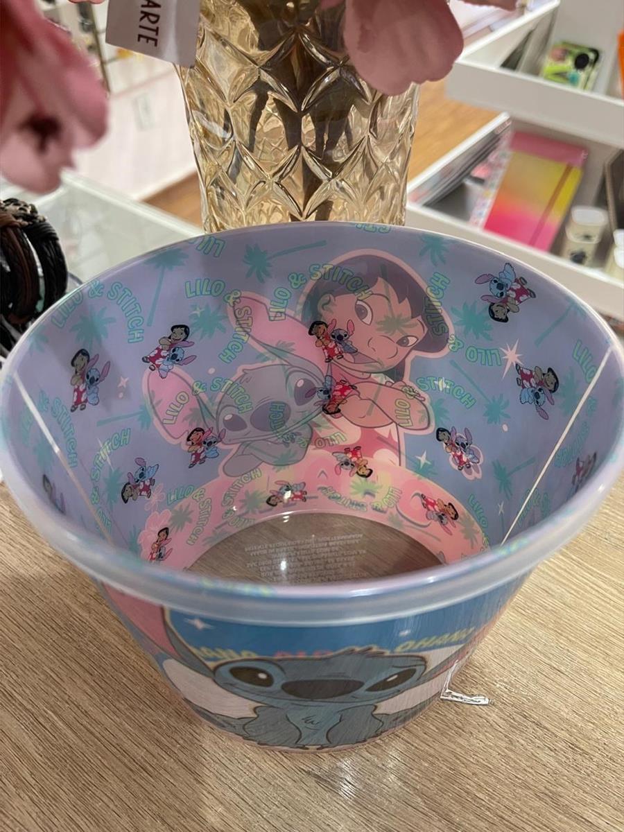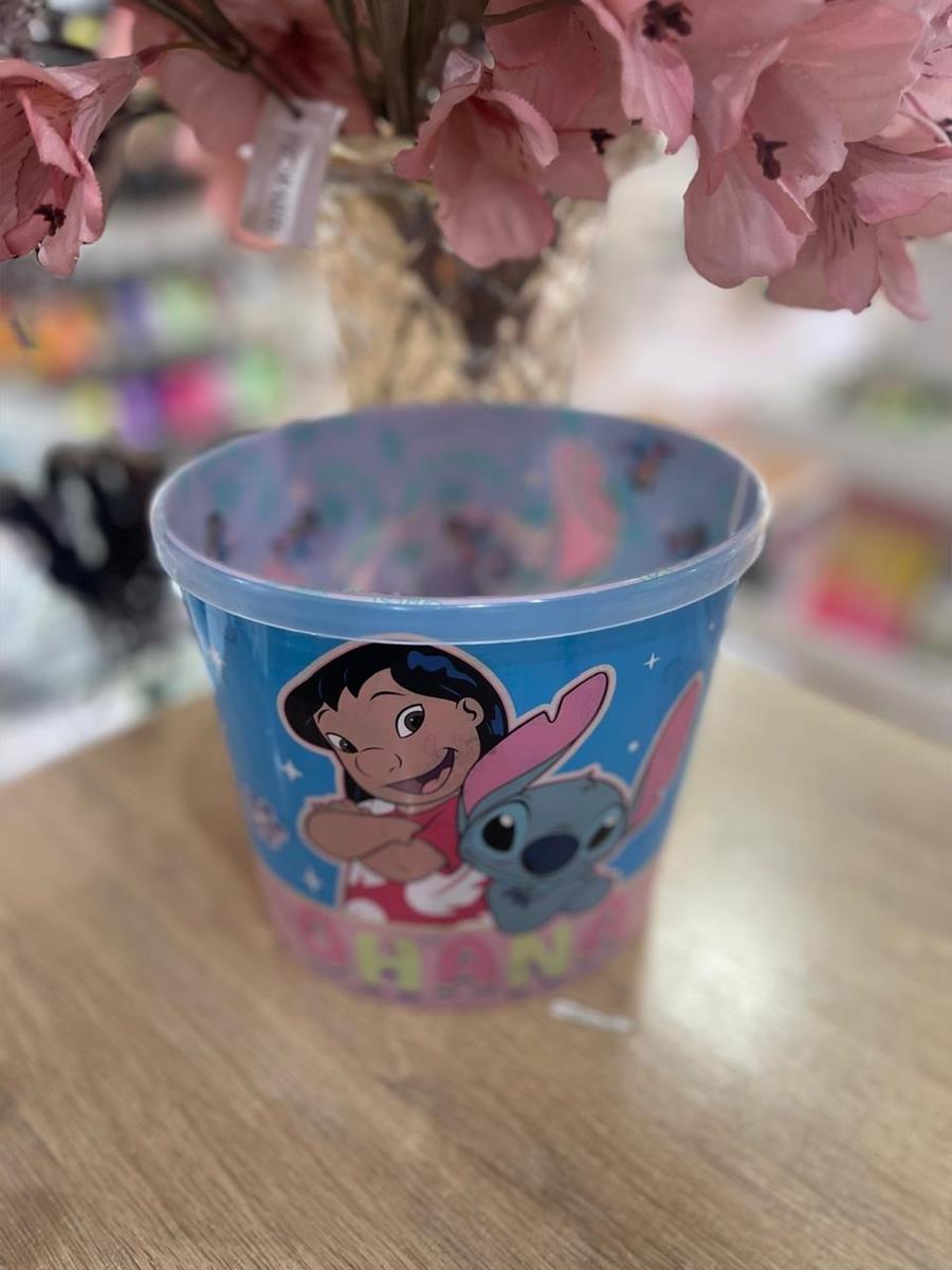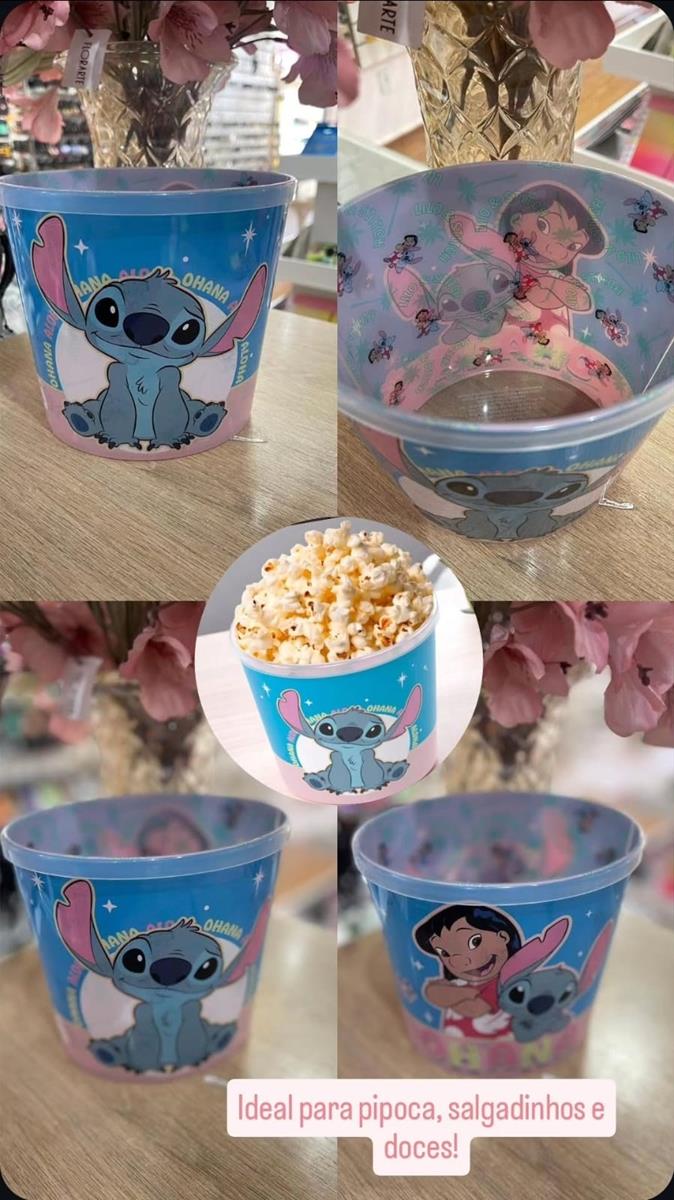 Balde de Pipoca decorado com o personagem Lilo e Stitch interno e externo com estampas vibrantes. Possui capacidade de 2,1 litros, ideal para porções generosas de pipoca , salgadinhos ou doces.