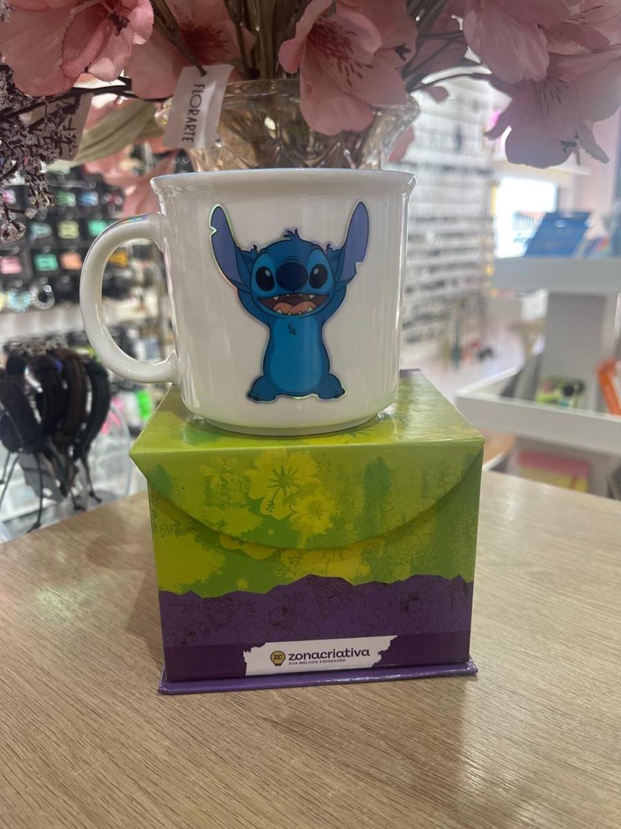 Caneca Stitch holográfica Disney Zonacriativa. Caixa com tampa magnética. Só para apaixonados pelo Stich.