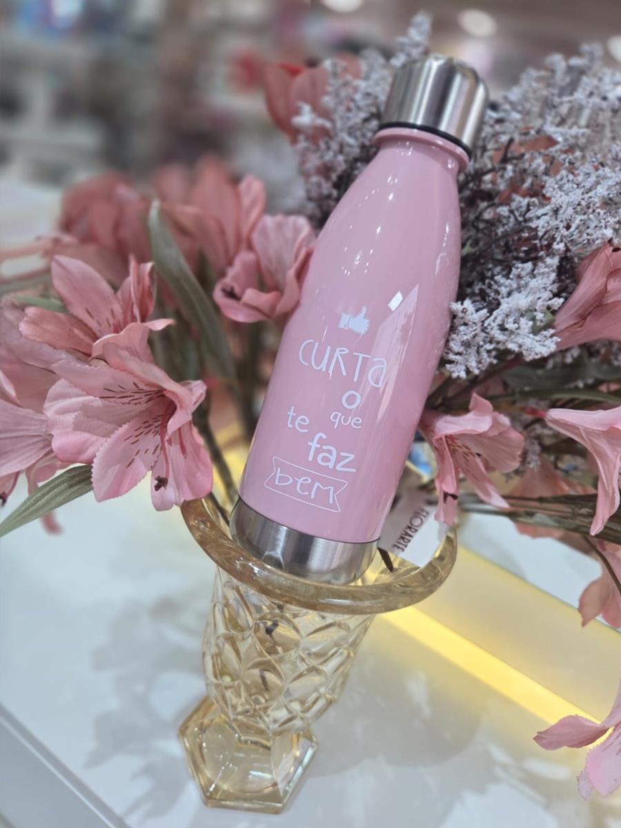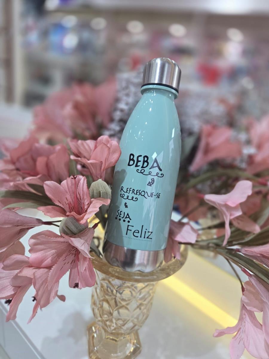 Garrafa de água decorada com frases inspiradoras, tampa inox , comporta 600ml